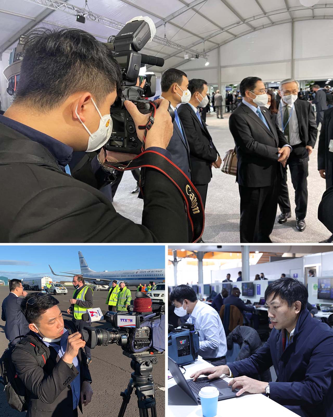 | Nhóm phóng viên TTXVN tác nghiệp tại Hội nghị thượng đỉnh COP26, Glasgow, Scotland (Vương quốc Anh), tháng 11/2021 |