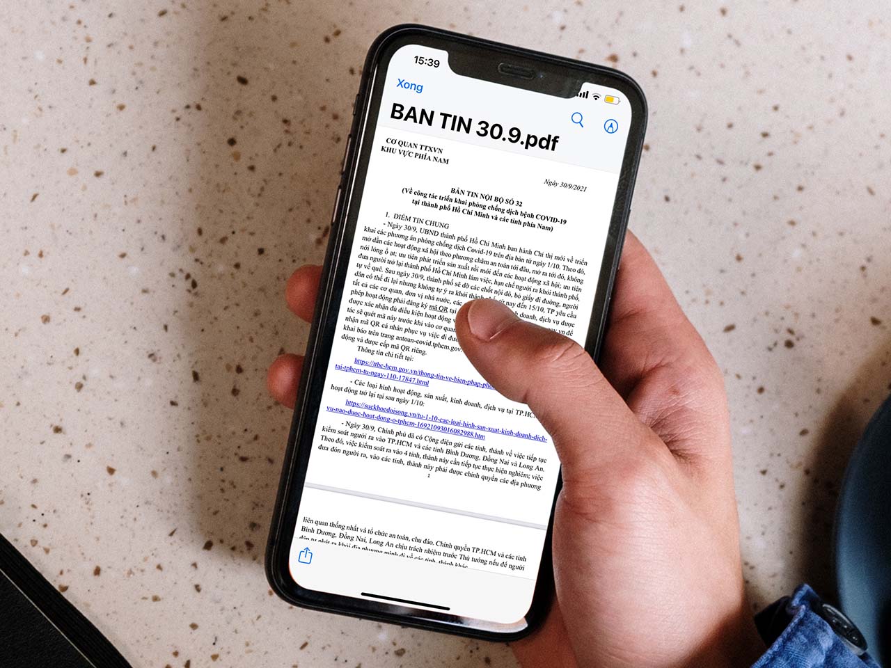 | Đọc bản tin nội bộ về công tác phòng chống dịch COVID-19 của Cơ quan khu vực phía Nam trên điện thoại di động |