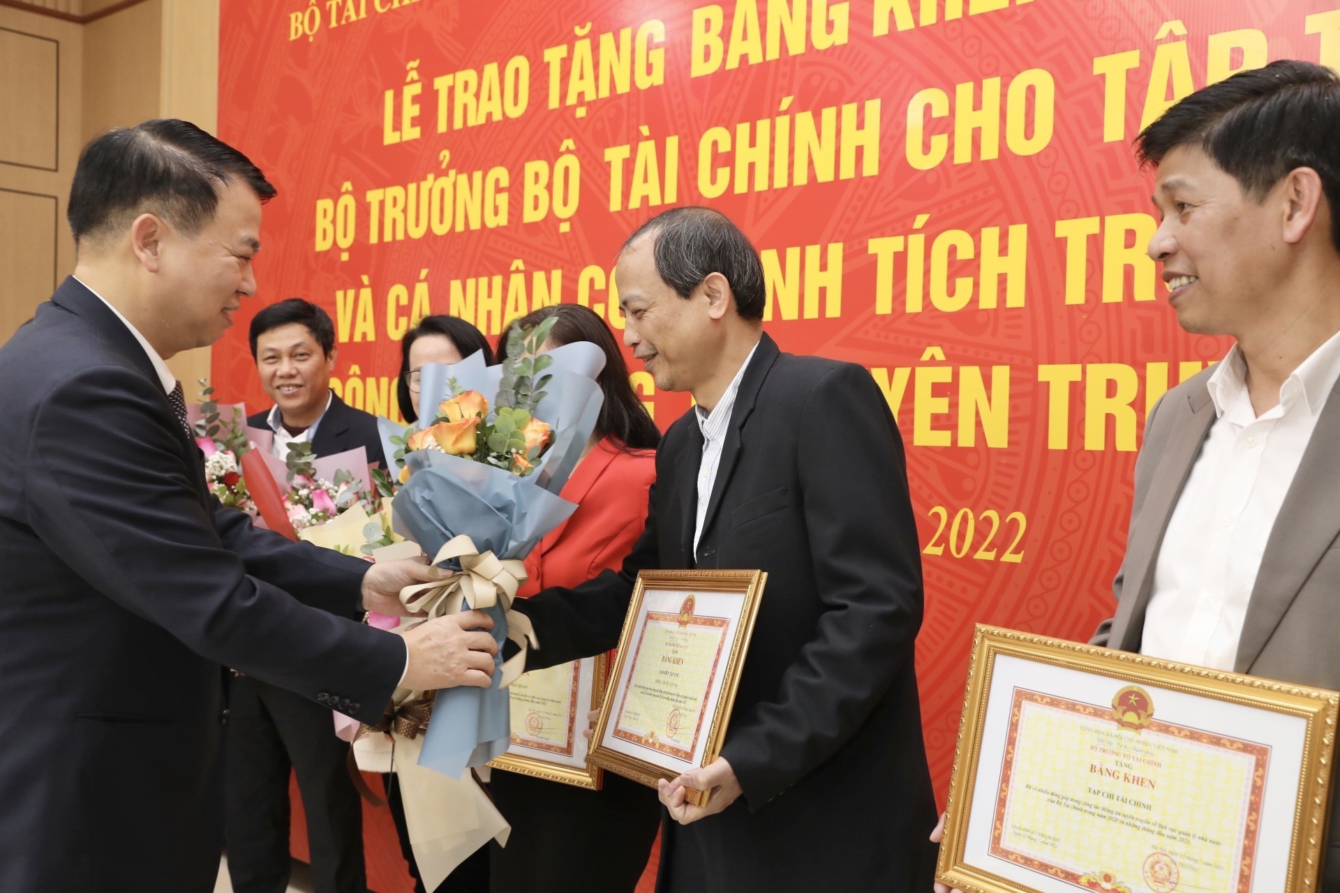 | Thứ trưởng Bộ Tài chính Nguyễn Đức Chi trao tặng Bằng khen của Bộ trưởng cho 12 tập thể có thành tích xuất sắc trong công tác thông tin, tuyên truyền |