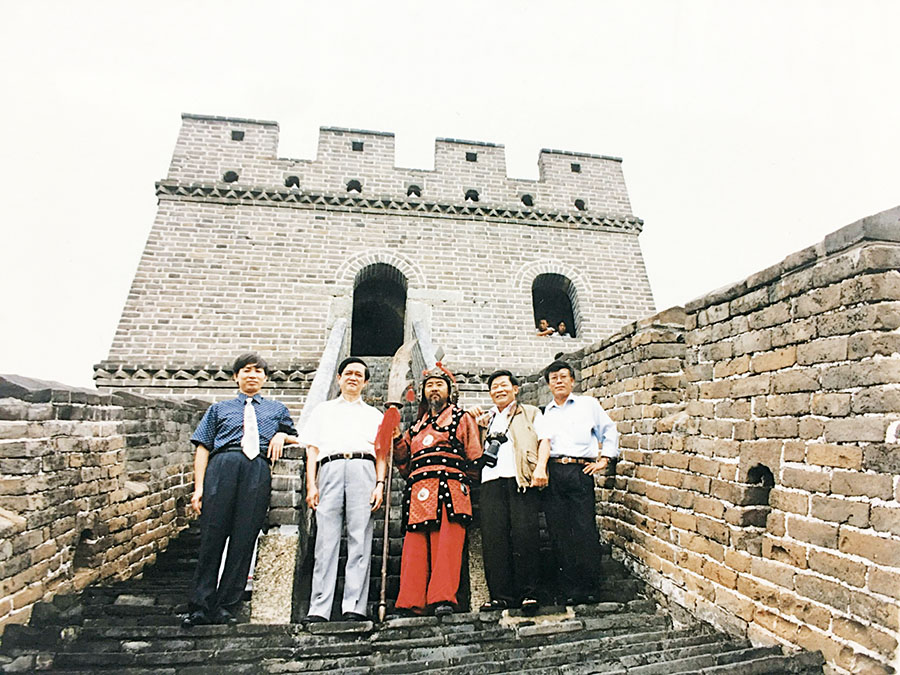 | Nhà báo Lương Ích Kiên (ngoài cùng bên phải) tháp tùng Tổng giám đốc Hồ Tiến Nghị trong chuyến thăm Trung Quốc theo lời mời của Xã trưởng Tân Hoa xã |