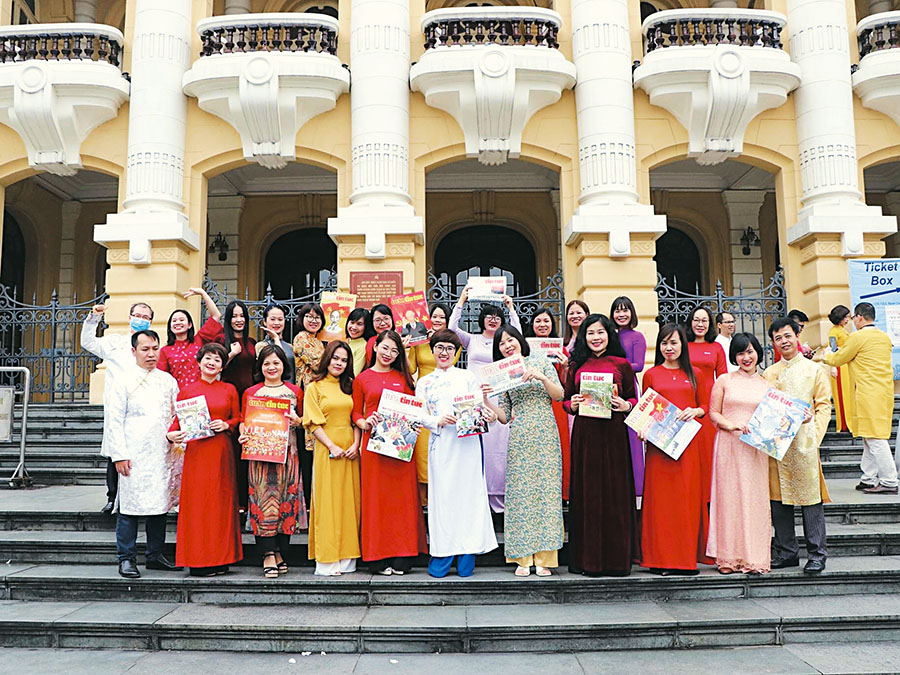 | Tập thể cán bộ, phóng viên báo Tin tức - TTXVN tại Nhà hát Lớn Hà Nội |