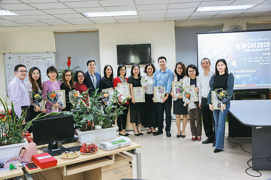 | Ban biên tập tin Đối ngoại TTXVN chung vui với các tác giả đoạt Giải báo chí TTXVN 2020, tháng 10/2021 |