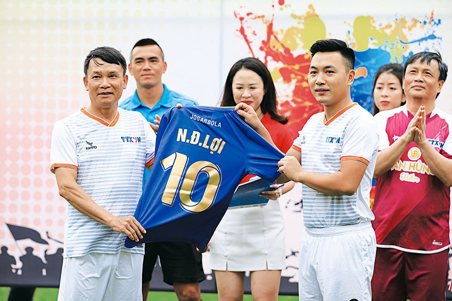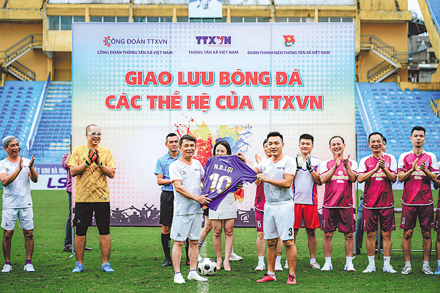 Giao lưu bóng đá các thế hệ TTXVN tại sân vận động Hàng Đẫy, Hà Nội, chào mừng 46 năm Ngày giải phóng miền Nam thống nhất đất nước./.