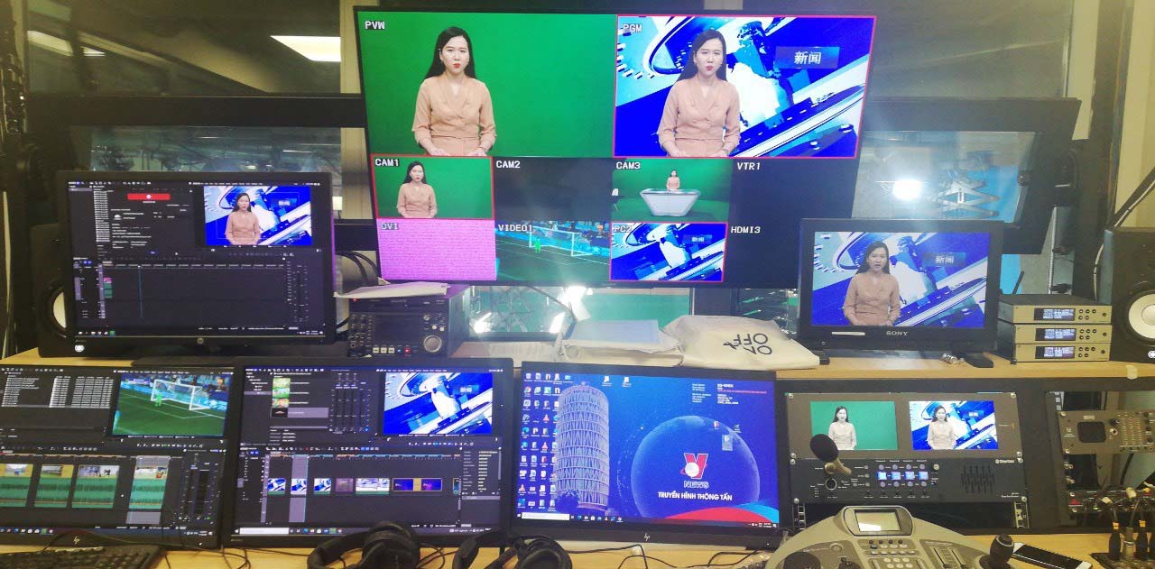 | Ghi hình bản tin hằng ngày tiếng Trung - một trong bốn bản tin của Ban biên tập tin Đối ngoại (TTXVN) phát trên kênh Truyền hình Thông tấn |