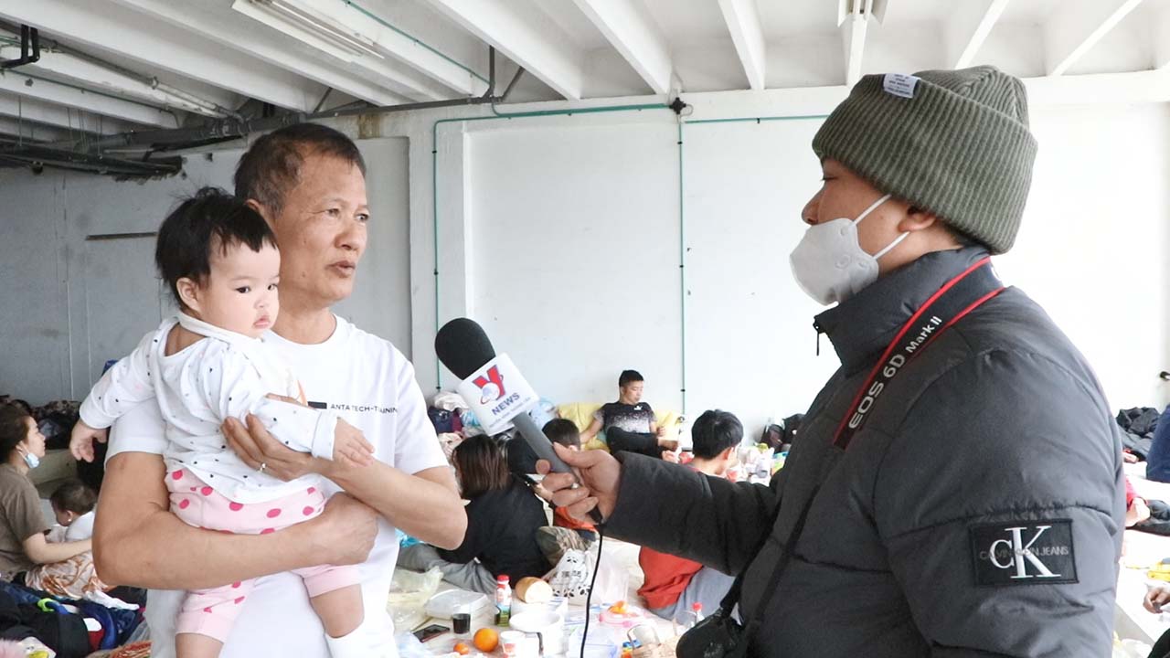 | Trò chuyện với một gia đình người Việt ở Bucharest (Romania) cho hàng chục bà con tá túc đợi chuyến bay, tháng 3/2022 |