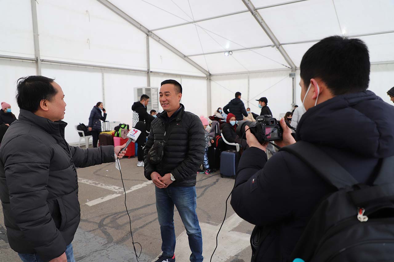 Chúng tôi nhờ anh Phan Thành Long, một cán bộ rất nhiệt tình trong Đại sứ quán đưa ra nhà ga trung tâm. Anh Long nói có thể chờ hoặc anh sẽ về và quay lại đón khi chúng tôi xong việc. Nhưng chúng tôi thống nhất sẽ ở ngoài nhà ga để săn tin và sẽ tự đi về. Lúc đó đã là 21 giờ, hầu như không còn đoàn bà con người Việt nào tới, dù vẫn còn rất nhiều đoàn người sơ tán từ Ukraine sang. Đúng là cảnh chạy nạn chiến tranh, điều mà chúng tôi mới chỉ được biết qua phim ảnh. Từng đoàn người xách theo ba lô, va li, lỉnh kỉnh những thứ có thể mang theo khi chạy nạn.