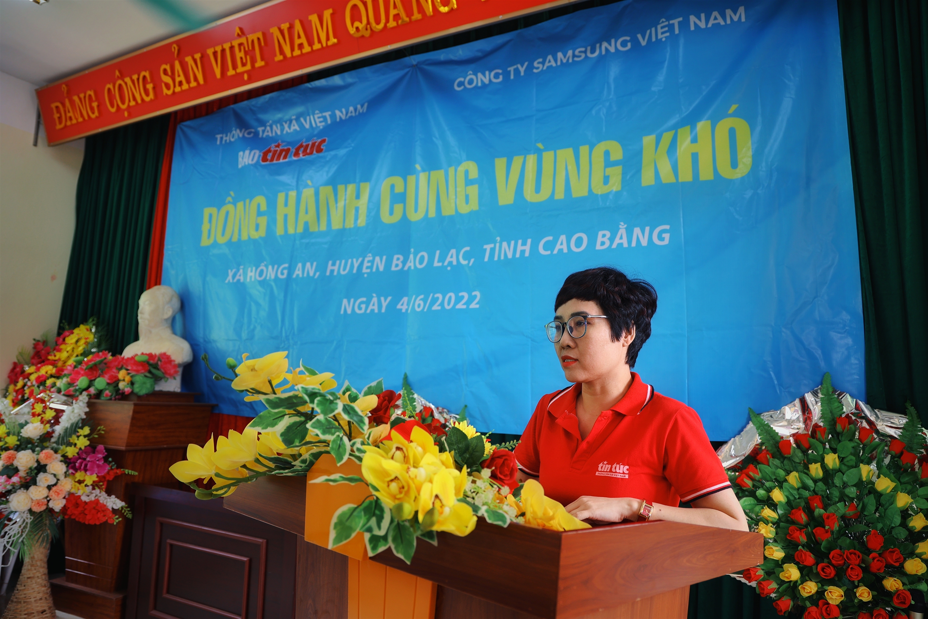 | Tổng biên tập báo Tin tức Ninh Hồng Nga phát biểu tại chương trình "Đồng hành cùng vùng khó" xã Hồng An, huyện Bảo Lạc, tỉnh Cao Bằng |