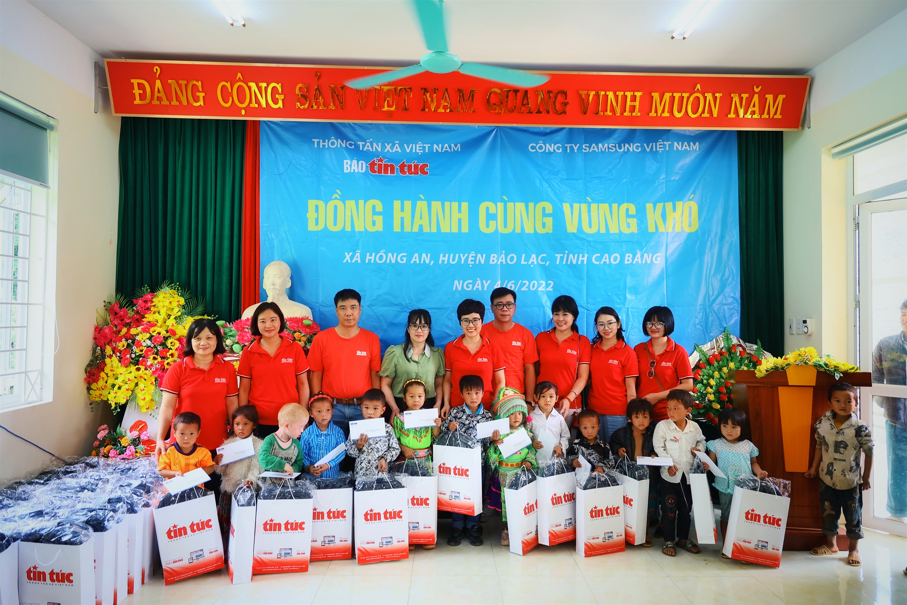 | Đoàn thiện nguyện của báo Tin tức và các em học sinh trường PTCS liên cấp xã Hồng An, huyện Bảo Lạc, tỉnh Cao Bằng |