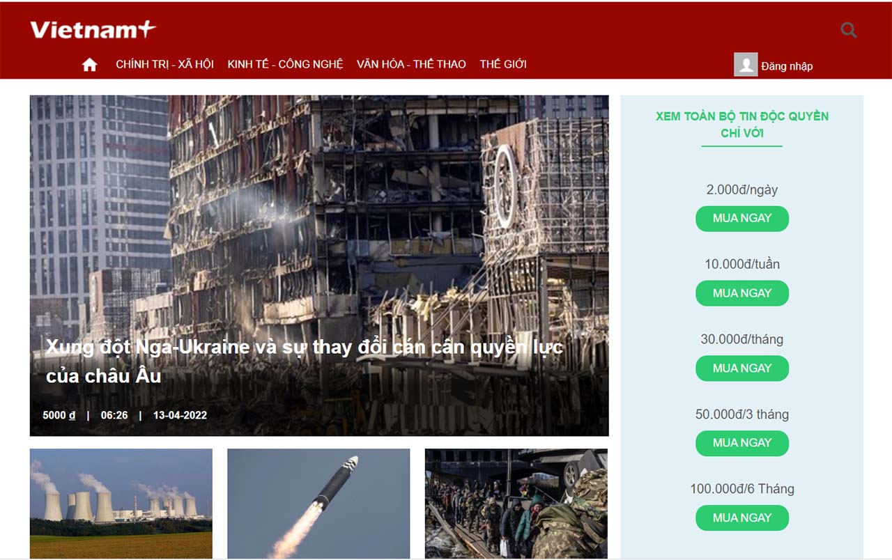 | Báo điện tử VietnamPlus là đơn vị tiên phong thực hiện thu phí người dùng |