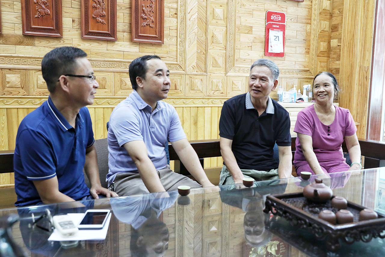 | Nhóm phóng viên CQTT tại Bắc Giang trò chuyện cùng ông Nguyễn Mạnh Hùng (thứ hai bên phải), em trai liệt sĩ Nguyễn Đức Hoằng, tại phường Xương Giang, TP. Bắc Giang |