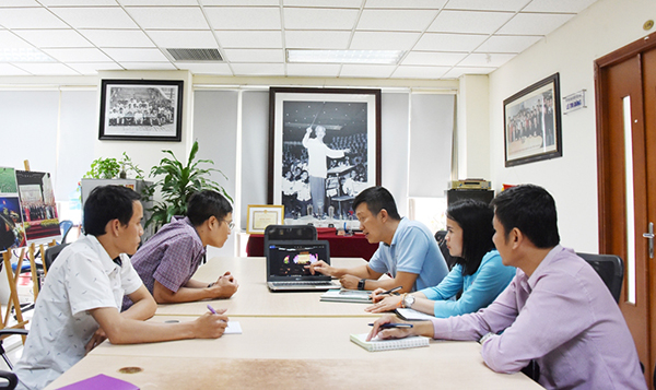 | Phóng viên Ban biên tập Ảnh - TTXVN trao đổi nghiệp vụ với các bạn KPL, tháng 6/2018 |