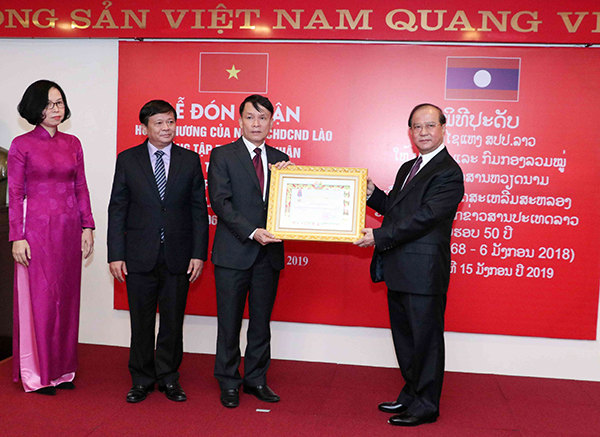 | Bộ trưởng Bộ Thông tin, Văn hóa và Du lịch Lào Bosengkham Vongdara trao Huân chương Tự do Isala hạng Nhì - phần thưởng cao quý của Đảng, Nhà nước Lào tặng TTXVN, tháng 1/2019 |
