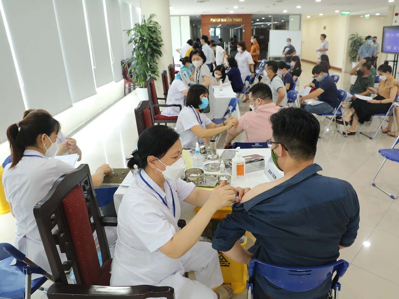 Sự kiện và kỷ niệmTin trong ngành TTXVN triển khai tiêm vaccine phòng dịch COVID-19 mũi 4 Thứ tư, 31/08/2022 14:34 Trong hai ngày 5 và 25/8, tại Trung tâm Thông tấn quốc gia, Hà Nội, gần 440 cán bộ, phóng viên, biên tập viên cùng đối tác, khách hàng của Thông tấn xã Việt Nam (TTXVN) đã được tiêm vaccine Pfizer mũi thứ 4 phòng dịch COVID-19. Nhân viên y tế quận Hoàn Kiếm tiêm vaccine phòng COVID-19 mũi thứ 4 cho cán bộ, phóng viên TTXVN ngay tại trụ sở làm việc, ngày 5/8 Công tác tiêm chủng được đảm bảo an toàn theo đúng hướng dẫn của Bộ Y tế, từ xây dựng các quy trình tiêm chủng đến khám sàng lọc trước tiêm và xử trí phản ứng sau tiêm. Sau khi tiêm mũi thứ 4, các phóng viên, biên tập viên được cấp Giấy xác nhận theo quy định. Tính từ đợt tiêm đầu tiên, ngày 17/5/2021 đến nay, TTXVN đã tổ chức tổng cộng 23 đợt cho khoảng gần 2.700 lượt người tiêm với hai loại vaccine chủ yếu là Astra Zeneca và Pfizer./. Nội san Thông tấn số 8/2022