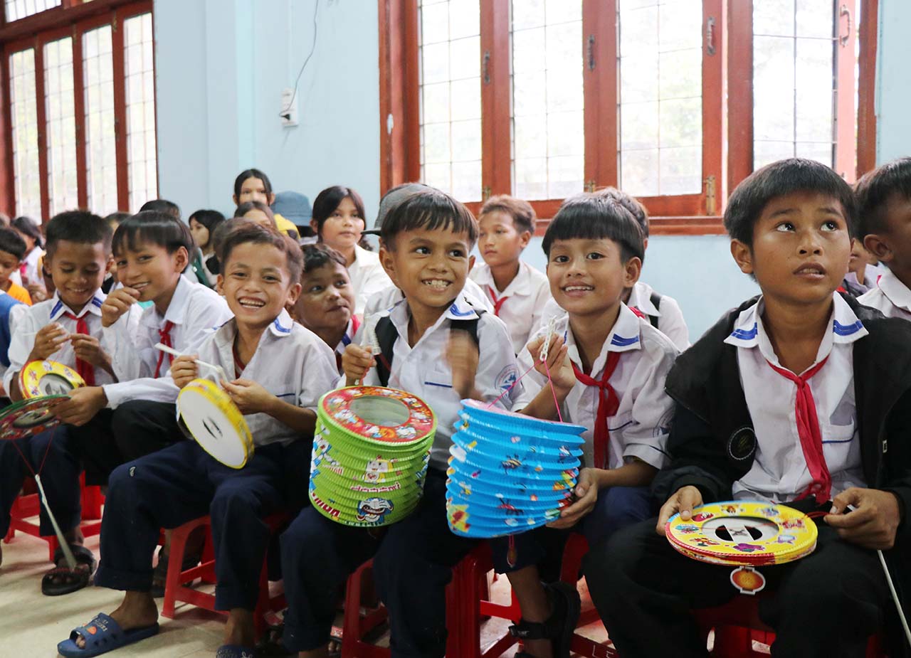 | Trao quà cho các em thiếu nhi tại chương trình "Vui hội trăng rằm" |
