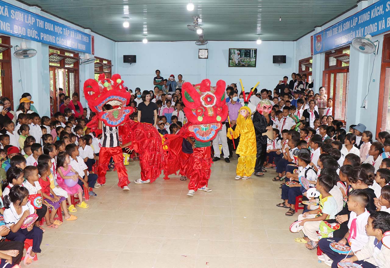 Sơn Lập cách trung tâm TP. Quảng Ngãi hơn 100km, là xã đặc biệt khó khăn với gần 350 hộ, trong đó có 189 hộ nghèo, 23 hộ cận nghèo; 95% là đồng bào Ca Dong. Đời sống của người dân trong xã còn nhiều khó khăn nên địa phương ít có dịp tổ chức chương trình tết Trung thu đầy đủ cho các em thiếu nhi trên địa bàn.