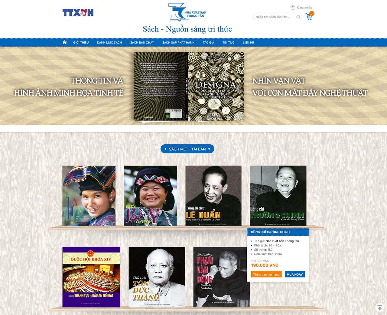Website mới này sẽ giúp Nhà xuất bản Thông tấn quảng bá, giới thiệu và tiến hành giao dịch thương mại các sản phẩm sách tới đông đảo bạn đọc. Trong tương lai gần, Nhà xuất bản Thông tấn dự định sẽ xuất bản sách điện tử để phục vụ nhu cầu bạn đọc và cũng là để bắt kịp xu thế chuyển đổi số đang diễn ra mạnh mẽ trong ngành xuất bản./. |
