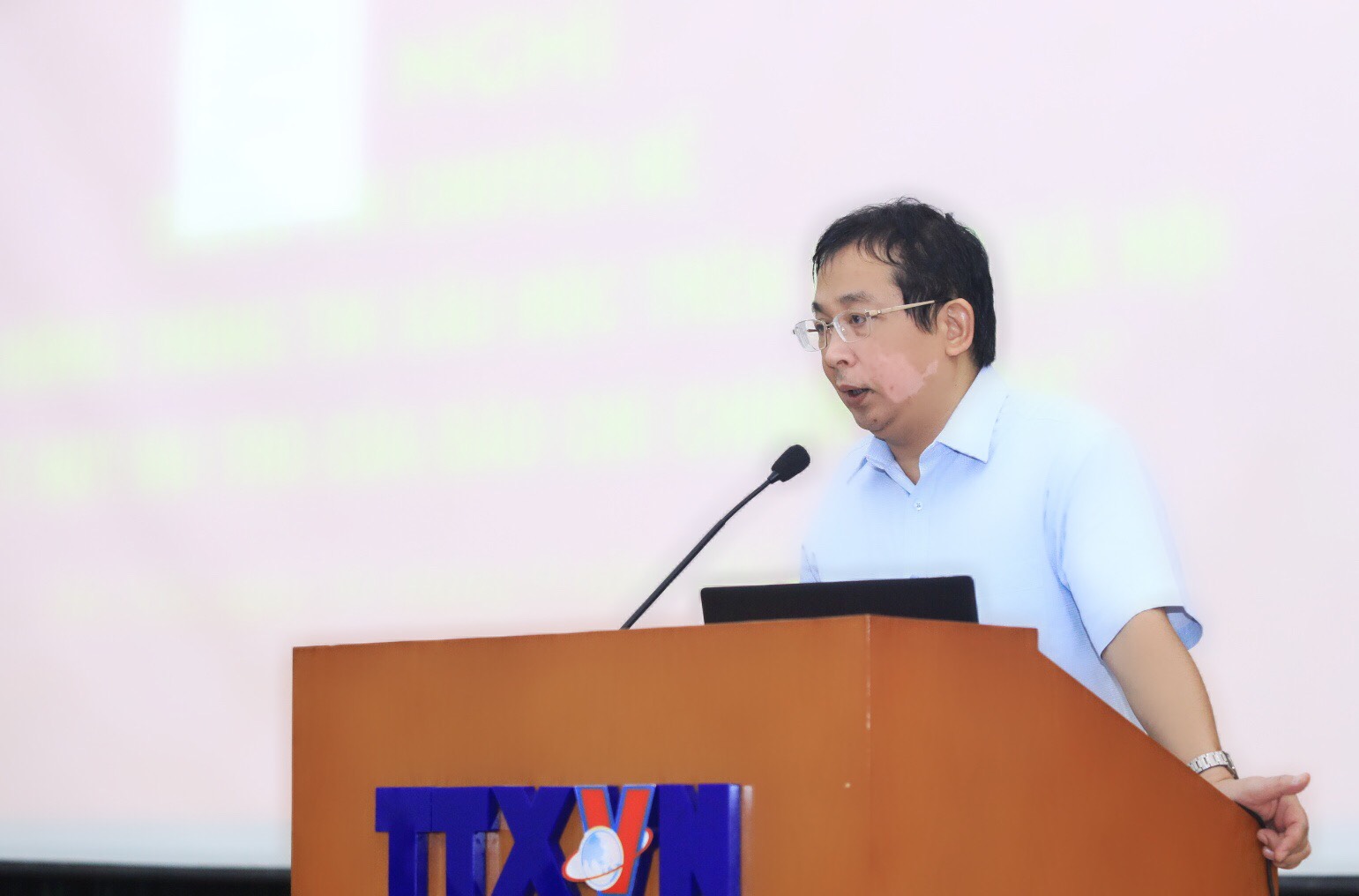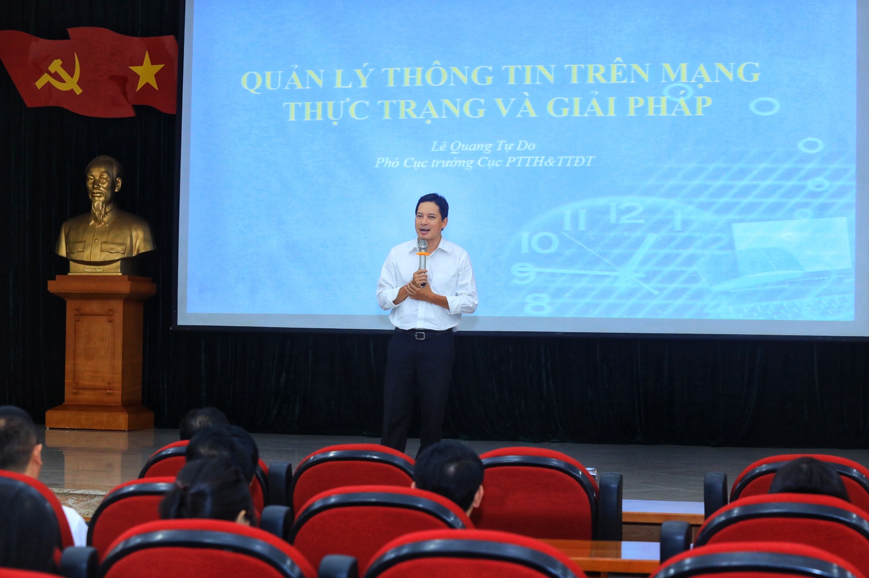 | Phó cục trưởng Cục Phát thanh – Truyền hình và Thông tin điện tử, Bộ Thông tin và Truyền thông Lê Quang Tự Do báo cáo tại hội nghị |