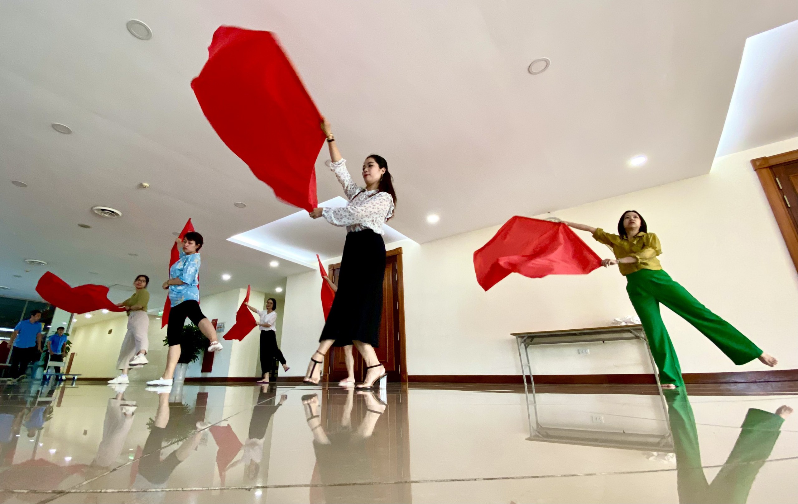 Đến những ngày nước rút, vừa bận công tác chuyên môn, vừa khẩn trương chuẩn bị cho lễ kỷ niệm, toàn đội vẫn động viên nhau cùng cố gắng, sắp tới ngày hái quả. Điều quan trọng nhất lúc này không còn là điểm số mà là toàn đội Văn phòng đã cùng nhau gắn kết, cống hiến hết mình để mang tới hội diễn những tiết mục chạm được vào cảm xúc của người xem.