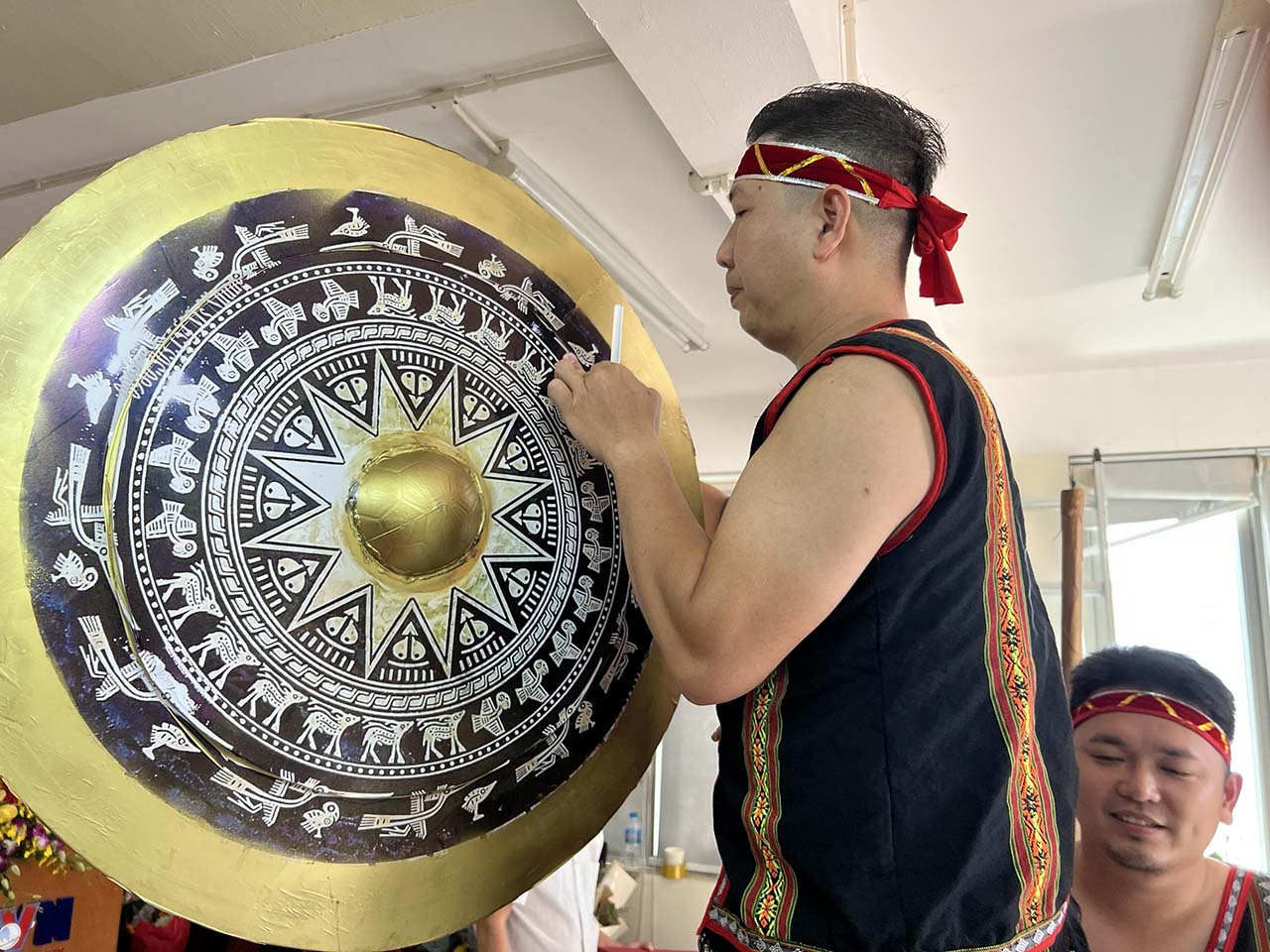 Để có thể tái hiện một phần “không gian văn hóa cồng chiêng”, một dàn khung để treo chiêng được anh em hì hụi cưa xẻ, lắp ghép từ các ống nhựa. Chiếc chiêng to nhất tạo điểm nhấn trên sân khấu được “phù phép” từ chiếc nia của nhà. Đặc biệt, để có những chiếc vòng “công tua” giống các cô gái Ê Đê, một cuộn thép nặng 1,5kg được anh em mua về, tự uốn thành vòng và xịt phủ sơn màu đồng. Chỉ trong nháy mắt, 5 cô gái trong đội múa đã có bộ vòng chất lừ “rung reng” trên cổ tay. Tất cả những món đạo cụ này đều được gói ghém cẩn thận mang đi hội diễn rồi mang về làm kỷ niệm. Đây là một minh chứng cho tinh thần đoàn kết, vượt khó và sáng tạo. Và đó cũng chính là ý nghĩa và mục đích lớn nhất mà đội Cơ quan khu vực miền Trung - Tây Nguyên mang đến hội diễn.