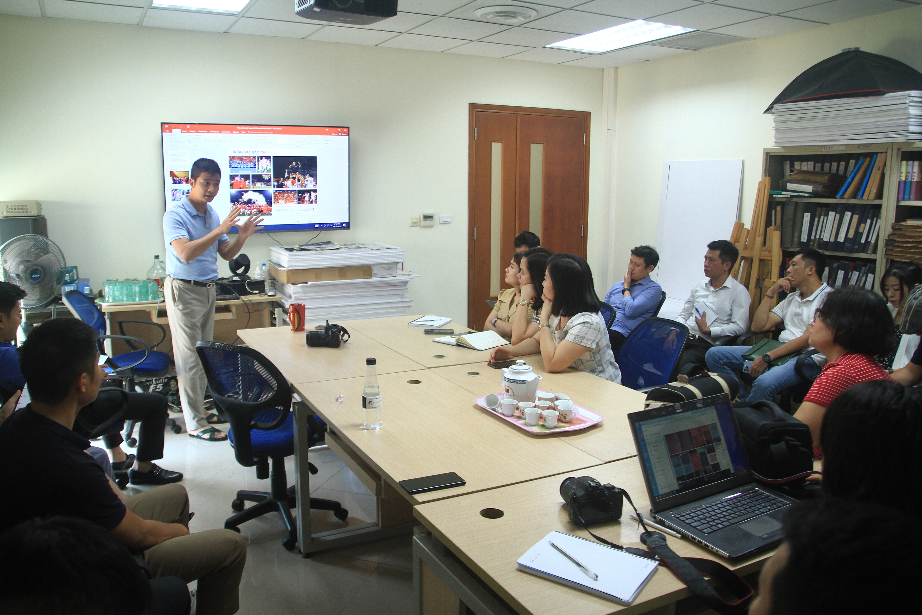 | Phó trưởng phòng Ảnh thời sự, Ban biên tập Ảnh TTXVN Bùi Lâm Khánh giới thiệu các kỹ năng chụp ảnh sự kiện, hội nghị chính trị - ngoại giao |