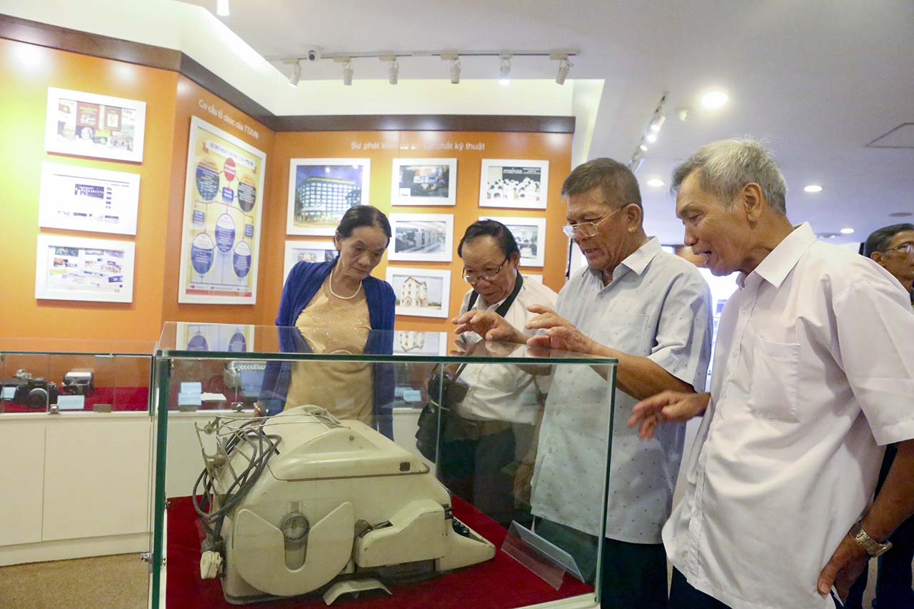 | Đoàn cựu cán bộ, kỹ thuật viên, điện báo viên Đài minh ngữ khu V tại Trung tâm Thông tấn quốc gia, tháng 9/2022 |