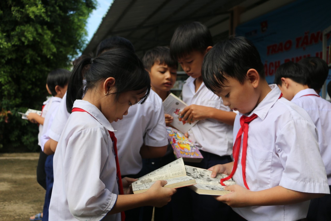 | Chương trình Tủ sách Đinh Hữu Dư góp phần đáp ứng nhu cầu đọc sách của các em học sinh |