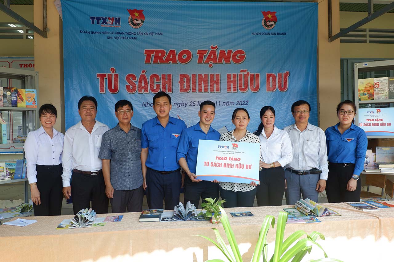 Ngày 25/11, Đoàn thanh niên Cơ quan Thông tấn xã Việt Nam (TTXVN) khu vực phía Nam phối hợp với Tỉnh đoàn Long An trao Tủ sách Đinh Hữu Dư tặng trường Tiểu học Nhơn Hòa và trồng 500 cây xanh tại xã Nhơn Hoà, huyện Tân Thạnh. Đây là “Tủ sách Đinh Hữu Dư” đầu tiên Đoàn thanh niên TTXVN trao tặng tại khu vực phía Nam.