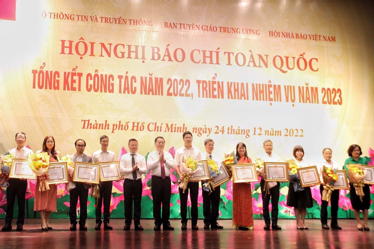 Nhân dịp này, Ban Tuyên giáo Trung ương đã trao tặng Bằng khen cho Ban biên tập tin Trong nước (TTXVN) và 31 tập thể vì những thành tích xuất sắc trong công tác báo chí năm 2022./.
