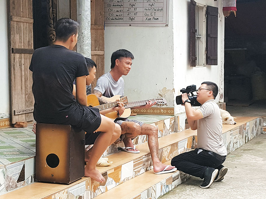Phóng viên An Thành Đạt, Báo ảnh Dân tộc và Miền núi - Thông tấn xã Việt Nam, tác nghiệp tại làng nghề Sơn Đồng, Hoài Đức, Hà Nội, tháng 12/2022