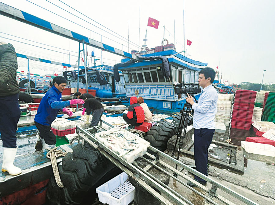 Phóng viên Nguyễn Đình Nam, Cơ quan thường trú Thông tấn xã Việt Nam tại Thanh Hóa ghi hình cảng cá Lạch Bạng, Nghi Sơn, tháng 1/2023