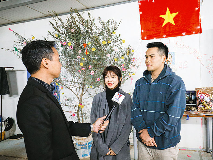 | Nhà báo Lê Vũ Hội, Cơ quan thường trú TTXVN tại Tel Aviv, phỏng vấn tu nghiệp sinh đón Giao thừa tại Idan, miền Nam Israel, tháng 2/2022 |