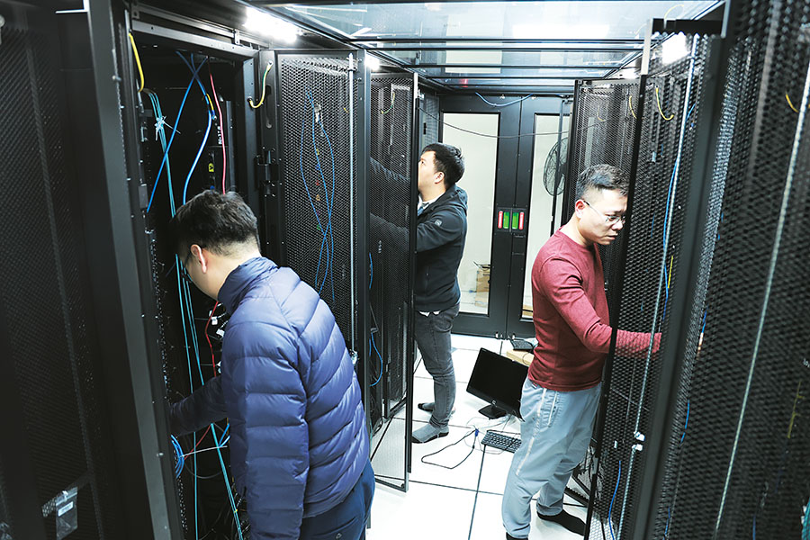 | Các kỹ sư Trung tâm Kỹ thuật Thông tấn kiểm tra và vận hành hệ thống máy chủ |