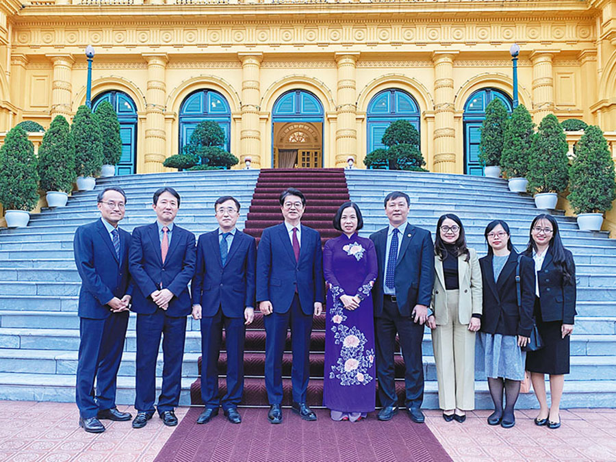 | Tổng giám đốc TTXVN Vũ Việt Trang cùng đoàn đại biểu hãng thông tấn Hàn Quốc Yonhap tại Phủ Chủ tịch, tháng 12/2022 |