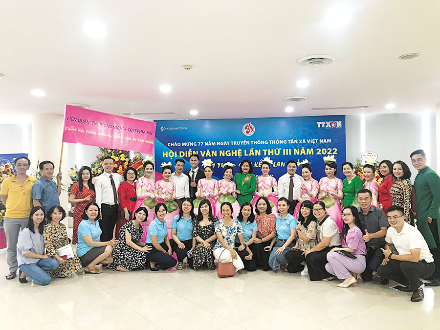 | Tập thể Ban biên tập tin Trong nước tại Hội diễn văn nghệ nhân dịp 77 năm thành lập TTXVN, tháng 9/2022 |