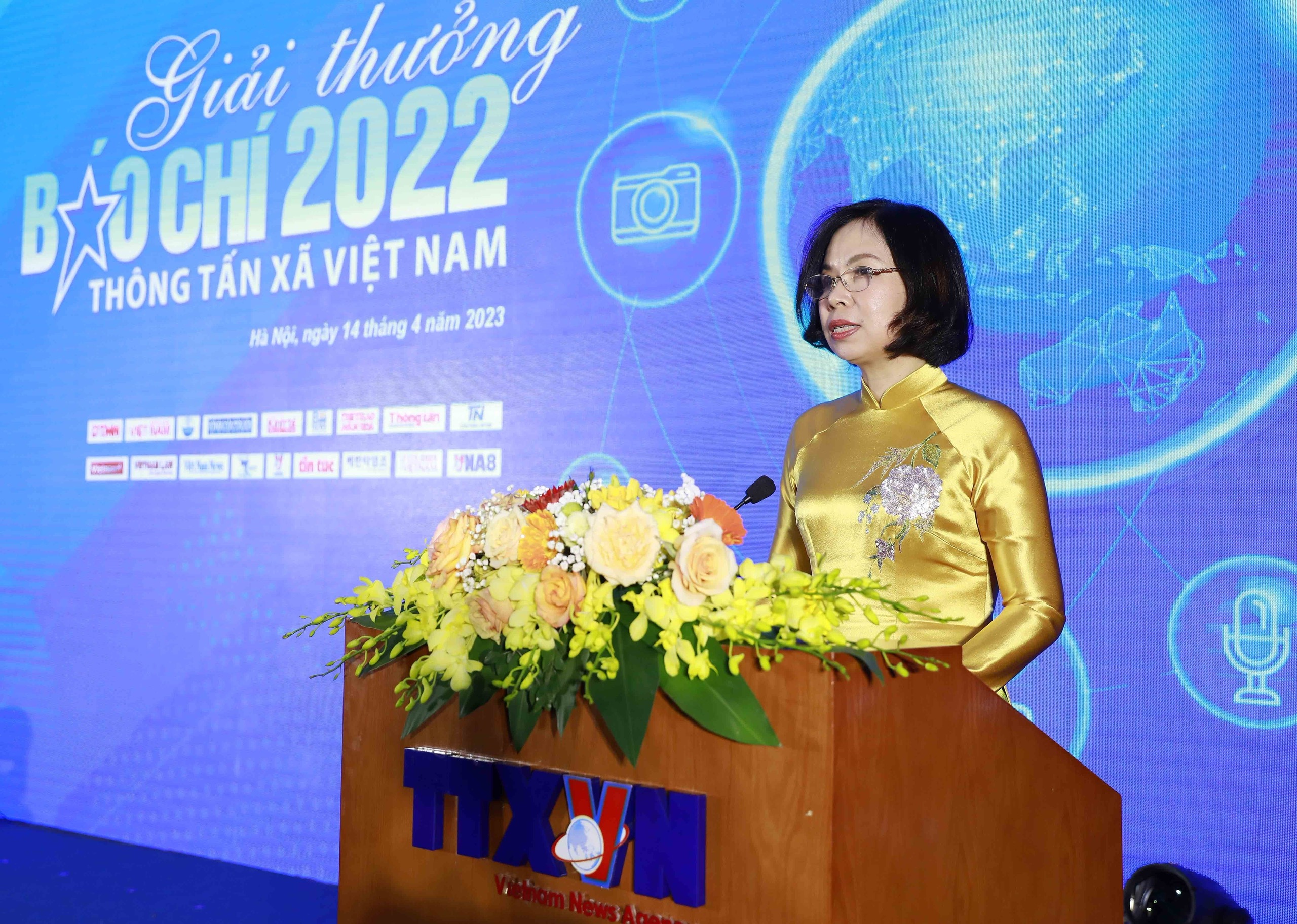 Phát biểu tại buổi lễ, thay mặt Đảng ủy, Ban lãnh đạo và Liên chi hội nhà báo TTXVN, Tổng giám đốc Vũ Việt Trang chúc mừng các tập thể, cá nhân vừa được nhận giải thưởng tại các hạng mục của Giải báo chí TTXVN năm 2022; đồng thời ghi nhận, cảm ơn các tác giả đã không ngừng nỗ lực, sáng tạo để có những sản phẩm báo chí chất lượng, tạo sự lan tỏa, mang lại hiệu ứng xã hội. Qua đó góp phần khẳng định vai trò của cơ quan Thông tấn quốc gia trong nền báo chí cả nước; tiếp tục khẳng định uy tín của Giải báo chí TTXVN. Nhiều mùa giải qua đã cho thấy, những tác phẩm được trao giải cao tại Giải báo chí TTXVN cũng là những tác phẩm được lựa chọn vào chung khảo và được trao giải tại các giải báo chí cấp quốc gia. Những tác giả, tác phẩm báo chí vừa được vinh danh ở các hạng mục cho thấy Giải báo chí TTXVN hằng năm là nơi hội tụ, thể hiện những nỗ lực, đóng góp của các phóng viên, biên tập viên Thông tấn có mặt trên mọi miền Tổ quốc và ở khắp năm châu.