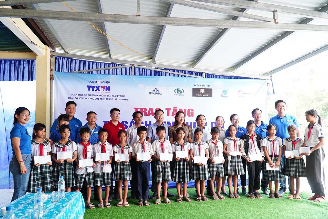 | Đoàn cơ sở TTXVN khu vực miền Trung - Tây Nguyên trao học bổng tặng học sinh có hoàn cảnh khó khăn của trường tiểu học Ba Dinh, huyện Ba Tơ, tỉnh Quảng Ngãi, tháng 4/2023 |