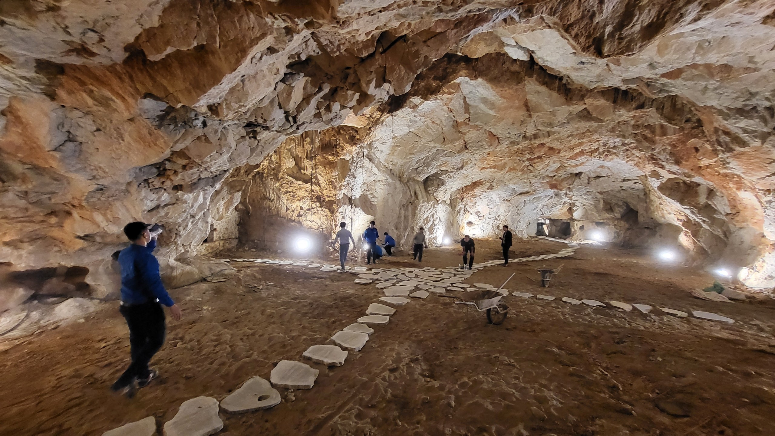 | Đoàn viên thanh niên Văn phòng TTXVN và Trung tâm Kỹ thuật Thông tấn lắp đặt hệ thống chiếu sáng và lát đá đường đi trong hang Gió tại khu di tích T6 của TTXVN, xã Phượng Cách, huyện Quốc Oai, Hà Nội |