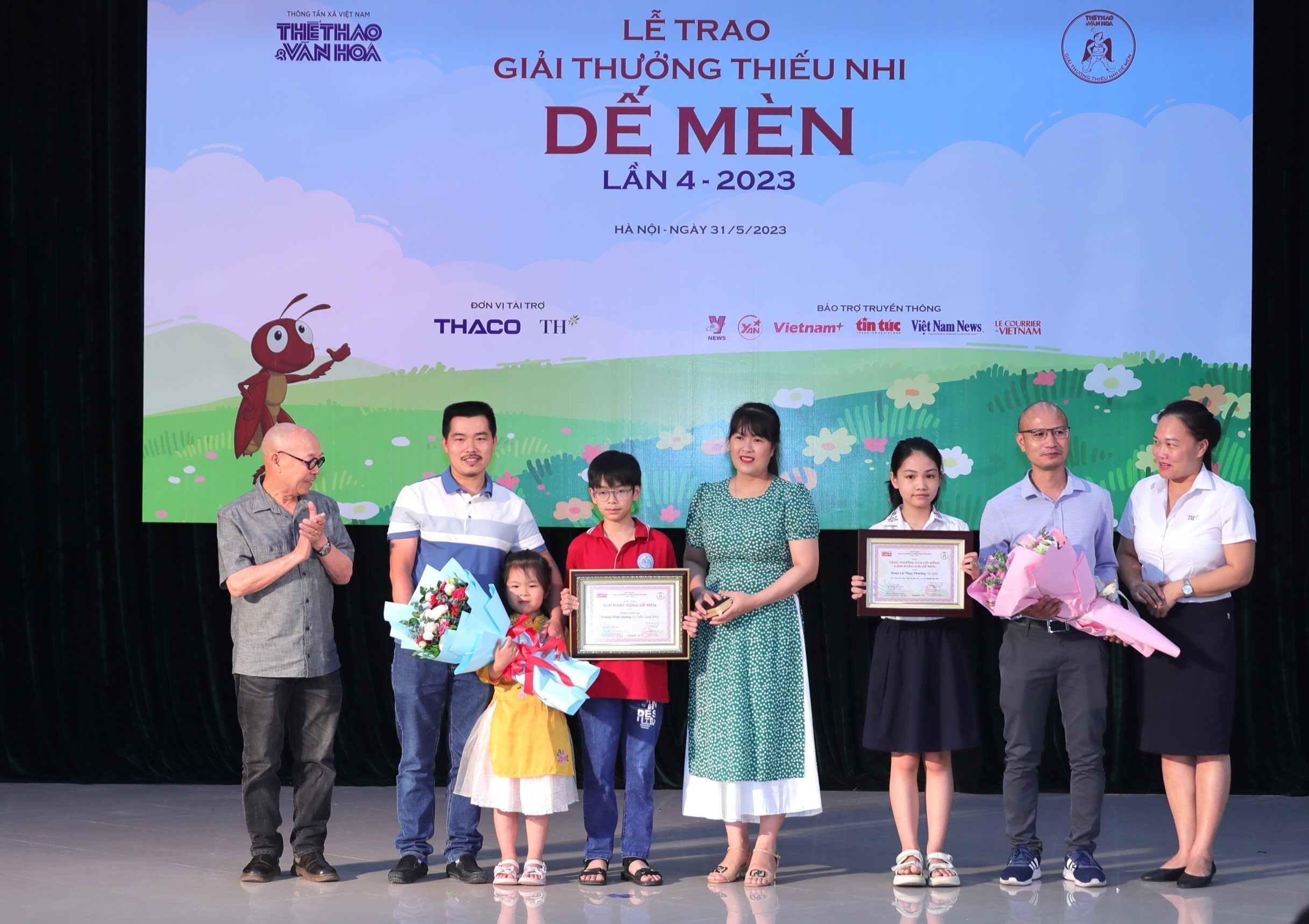 Ngày 31/5, báo Thể thao và Văn hóa thuộc Thông tấn xã Việt Nam (TTXVN) đã tổ chức Lễ trao giải thưởng thiếu nhi Dế Mèn lần 4 - 2023 tại Trung tâm Thông tấn quốc gia, số 5 Lý Thường Kiệt, Hà Nội. Đây là một mùa giải phong phú, vượt dự đoán, khi có 7 giải thưởng và tặng thưởng được trao, trong đó có hai tác giả là thiếu nhi. Đặc biệt, lần đầu tiên sau hai năm vắng bóng, Ban tổ chức đã tìm được “Hiệp sĩ Dế Mèn”.