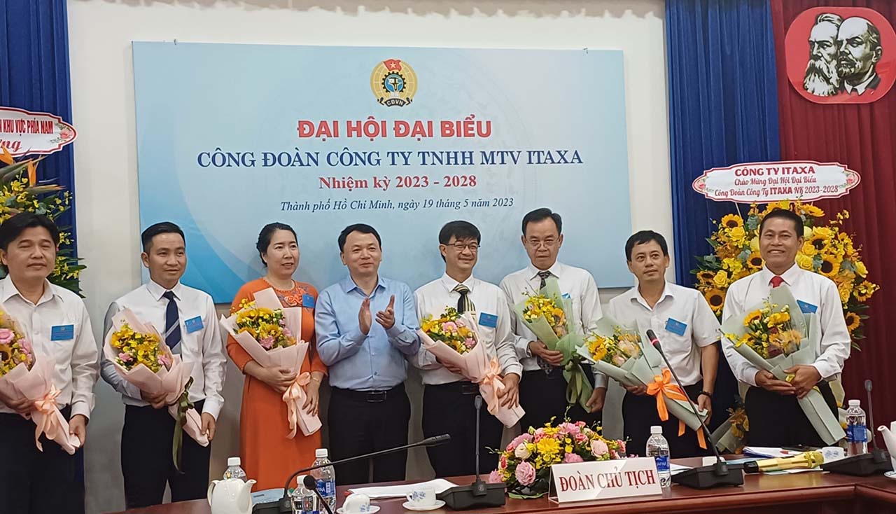| Chủ tịch Công đoàn TTXVN Đỗ Mạnh Chiến chúc mừng thành công Đại hội Công đoàn Công ty TNHH MTV ITAXA nhiệm kỳ mới, ngày 19/5 |
