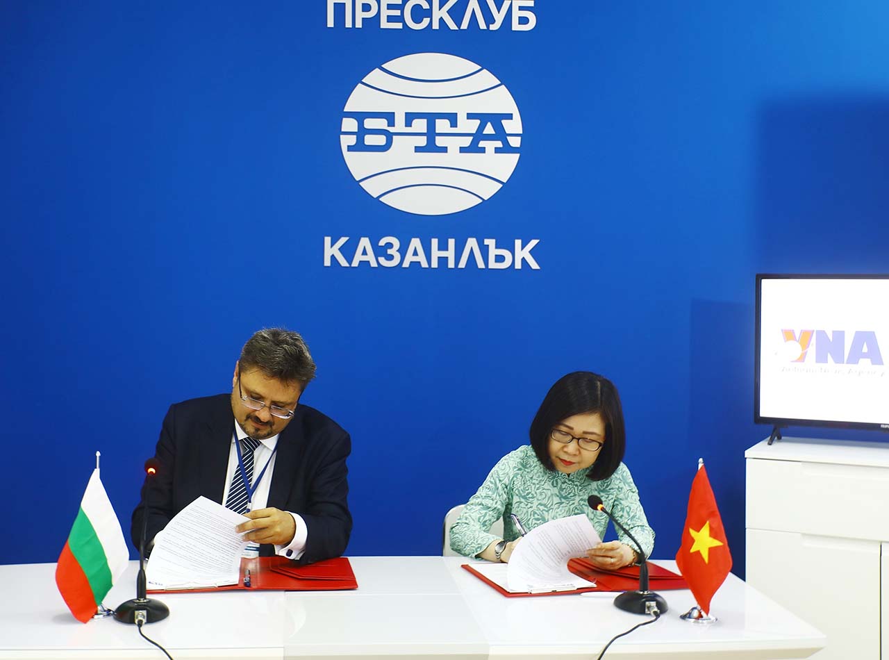 Nhân chuyến công tác Bulgaria theo lời mời của lãnh đạo hãng thông tấn Bulgaria (BTA), từ ngày 1-5/6, Phó tổng giám đốc Thông tấn xã Việt Nam (TTXVN) Đoàn Thị Tuyết Nhung đã có buổi làm việc với Tổng giám đốc BTA Kiril Valchev và ký kết thỏa thuận hợp tác trao đổi nghiệp vụ giữa hai hãng thông tấn trong tình hình mới.