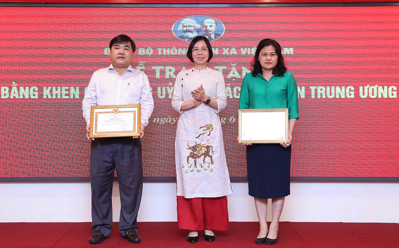 | Đồng chí Vũ Việt Trang, Ủy viên Ban chấp hành Đảng bộ Khối các cơ quan Trung ương, Bí thư Đảng ủy, Tổng giám đốc TTXVN trao Bằng khen của Đảng ủy Khối tặng Đảng bộ Ban biên tập tin trong nước và Đảng bộ Cơ quan TTXVN khu vực phía Nam vì đã hoàn thành xuất sắc nhiệm vụ giai đoạn 2018 - 2022 |