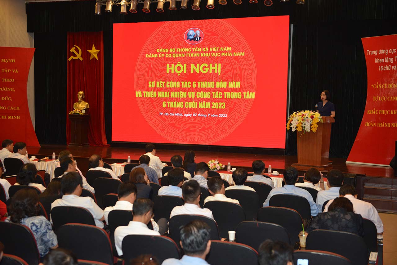 Phát biểu tại Hội nghị sơ kết công tác 6 tháng đầu năm và triển khai nhiệm vụ 6 tháng cuối năm 2023 của Đảng bộ Cơ quan TTXVN (Thông tấn xã Việt Nam) khu vực phía Nam, Bí thư Đảng ủy, Tổng giám đốc TTXVN Vũ Việt Trang đánh giá cao việc thực hiện nhiệm vụ chính trị của Đảng bộ Cơ quan khu vực phía Nam 6 tháng đầu năm 2023, thông qua số lượng, chất lượng thông tin ở cả ba loại hình, nhất là các tuyến thông tin chuyên đề, thông tin liên vùng, phát huy hiệu quả hoạt động của hệ thống các cơ quan thường trú tại địa bàn. Cơ quan khu vực phía Nam đã khai thác tốt tiềm năng, thế mạnh của một đơn vị của TTXVN đứng chân trong khu vực phát triển kinh tế năng động, vừa tạo được nguồn thu, vừa nâng cao được vị thế của TTXVN tại các địa phương.