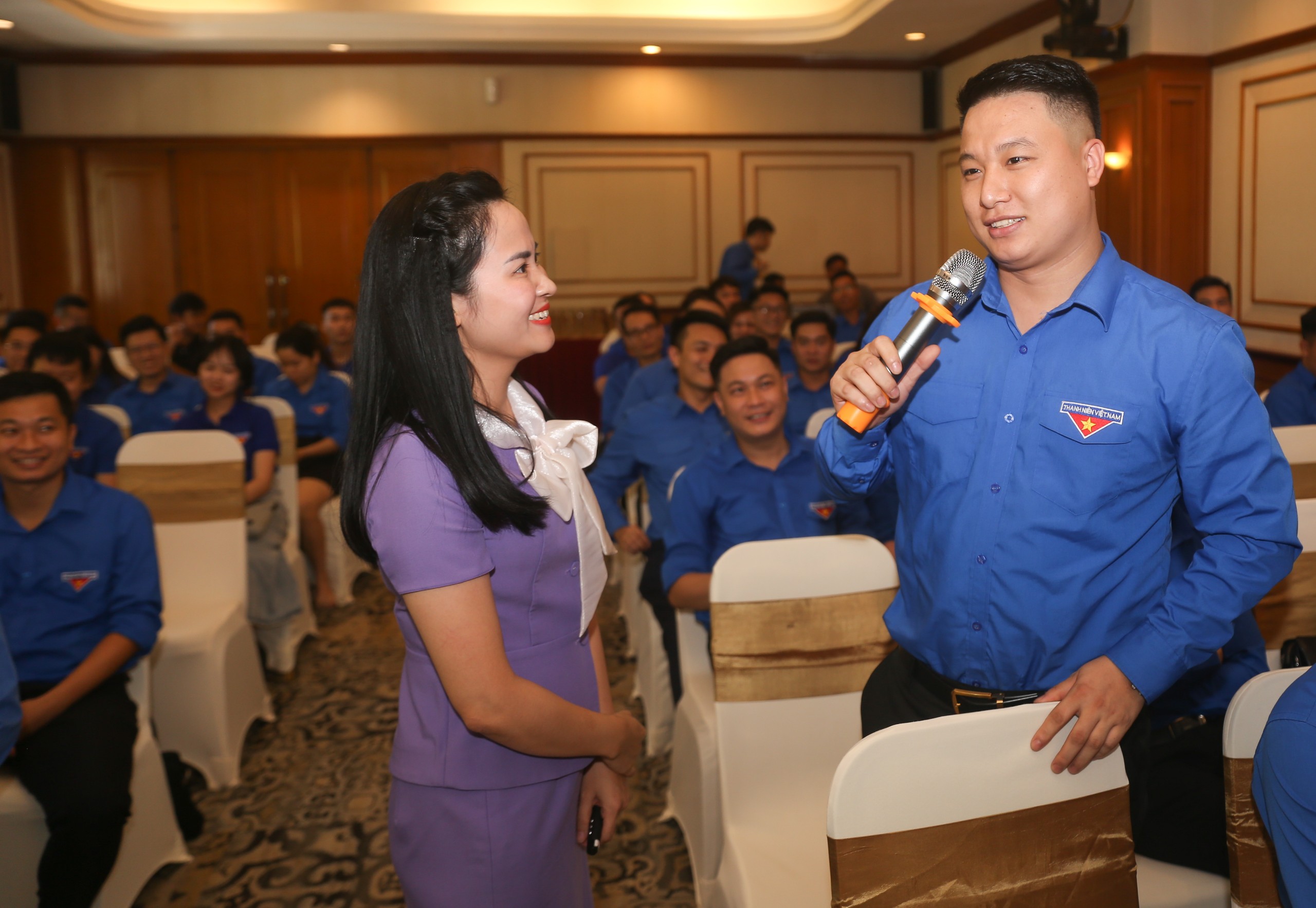 | Đoàn viên thanh niên Tập đoàn công nghiệp than khoáng sản Việt Nam (TKV) đặt câu hỏi tại buổi tập huấn |
