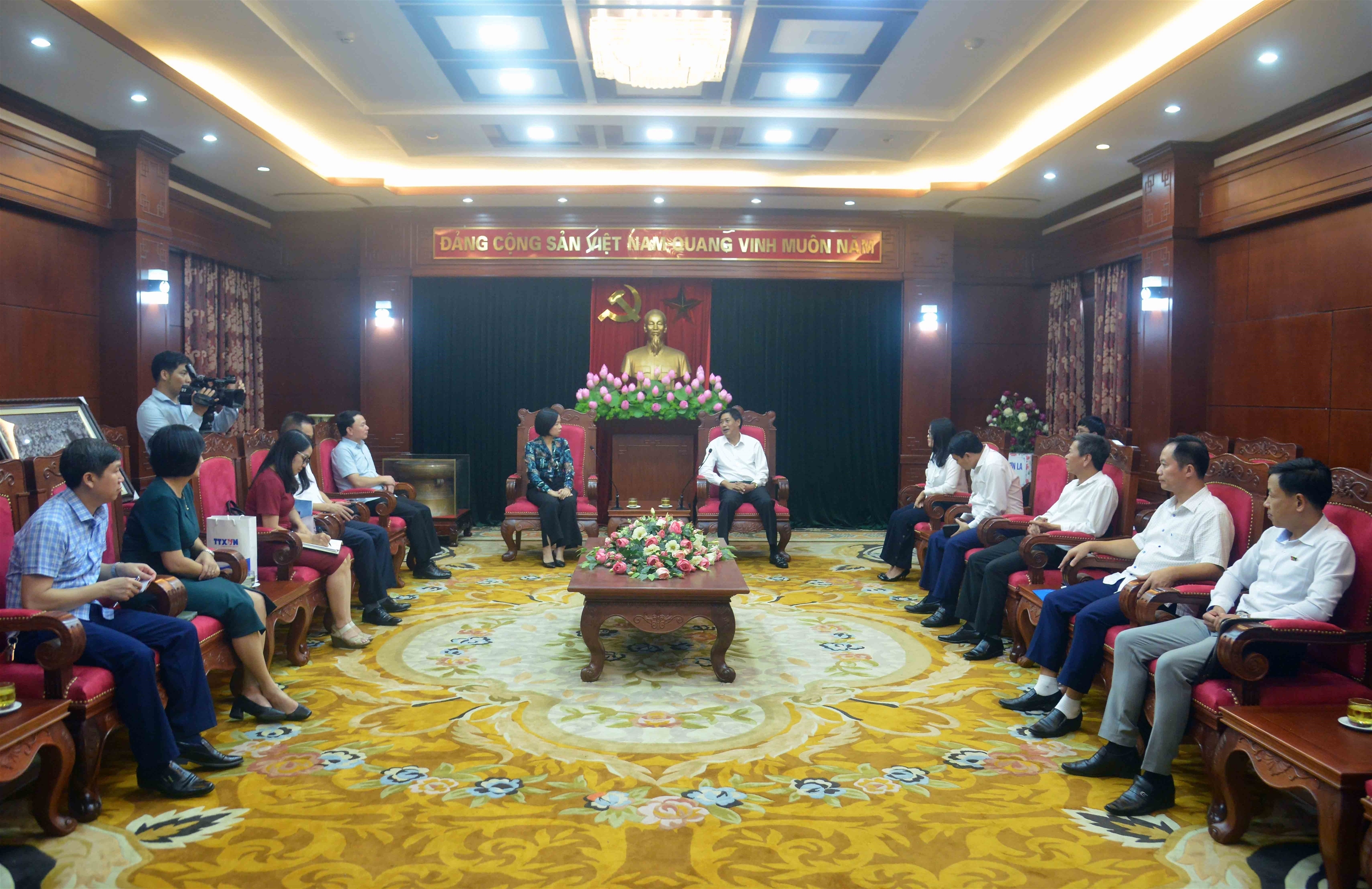 Ngày 30/8, Bí thư Đảng ủy, Tổng giám đốc Thông tấn xã Việt Nam (TTXVN) Vũ Việt Trang cùng đoàn công tác đã làm việc với Ủy viên Trung ương Đảng, Bí thư Tỉnh ủy Sơn La Nguyễn Hữu Đông và Phó bí thư thường trực Tỉnh ủy Điện Biên Mùa A Sơn.