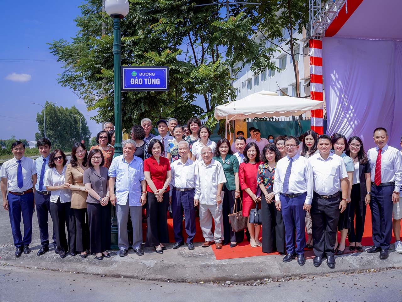| Các đại biểu chụp ảnh kỷ niệm trên tuyến phố mới mang tên nguyên Tổng giám đốc TTXVN Đào Tùng, TP. Bắc Giang, ngày 8/9 |