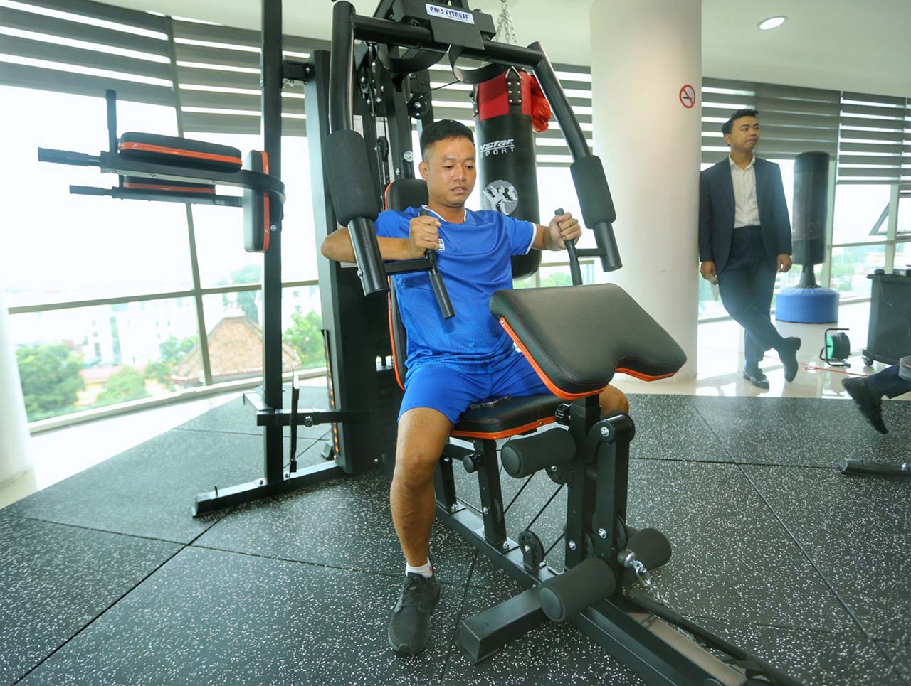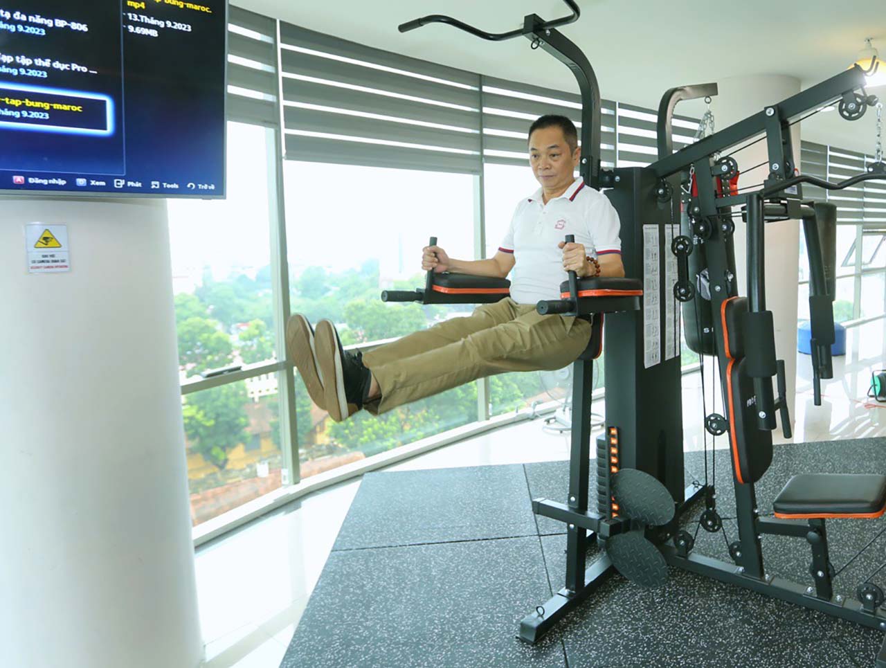 2, gồm nhiều trang thiết bị như: xe đạp tập thể dục, máy chạy bộ điện, giàn tạ đa năng, ghế tập gym đa năng, máy tập bụng đa năng, tạ tay thép bọc cao su... Người tham gia luyện tập tại phòng thể thao cần đăng ký hội viên với Văn phòng cơ quan. Trong các ngày làm việc, phòng tập mở cửa theo 3 ca: từ 6 giờ đến 7 giờ 30 phút; từ 11 giờ 30 phút đến 13 giờ 30 phút; từ 16 giờ 30 phút đến 19 giờ 30 phút. Các ngày nghỉ, ngày lễ, phòng tập mở cửa từ 7 giờ đến 19 giờ./.