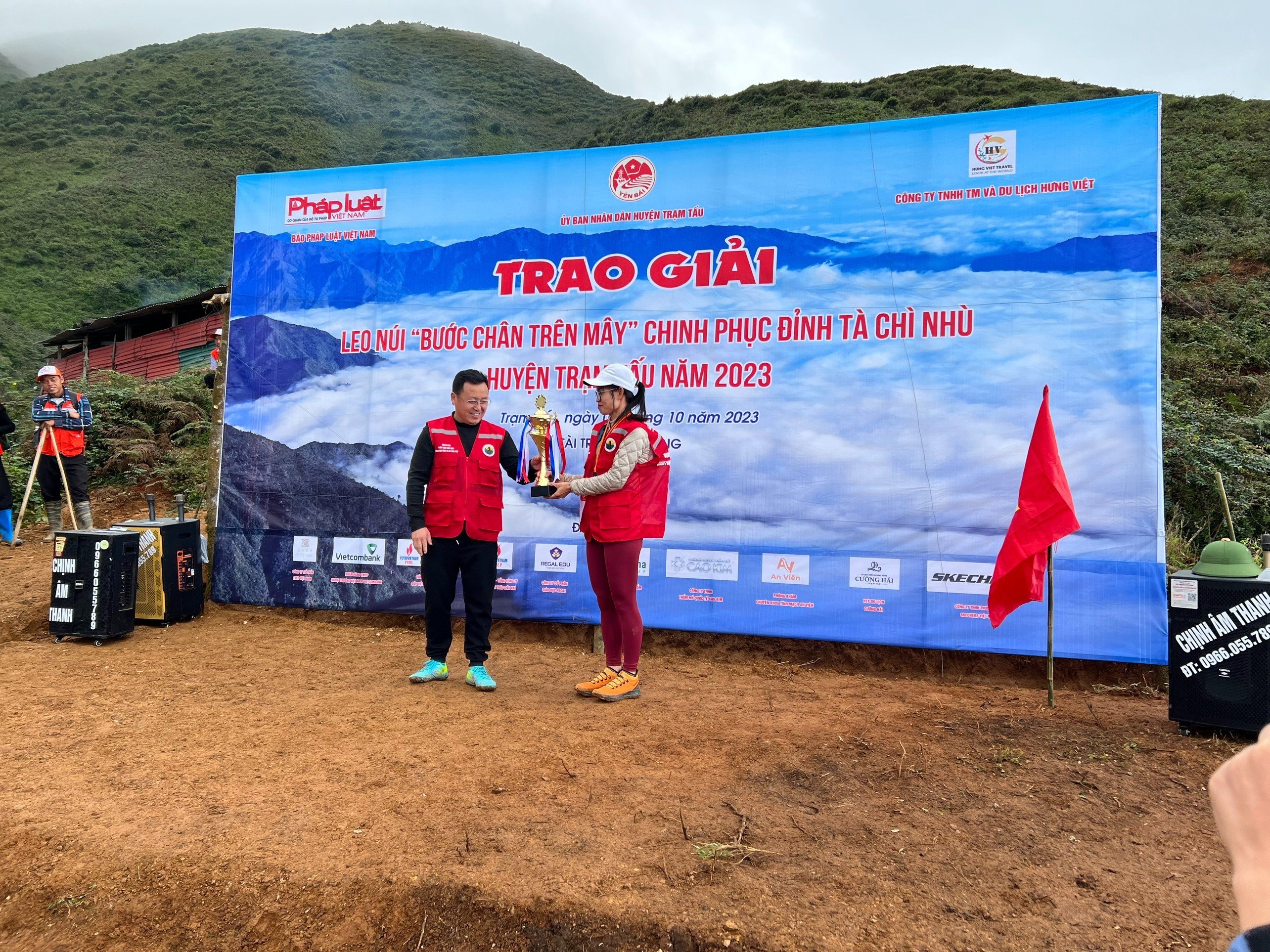 | Ban tổ chức giải leo núi “Bước chân trên mây” - chinh phục đỉnh Tà Chì Nhù năm 2023 trao giải nhất cho VĐV Trần Thu Trang, Trung tâm Truyền hình Thông tấn, ngày 1/10 |