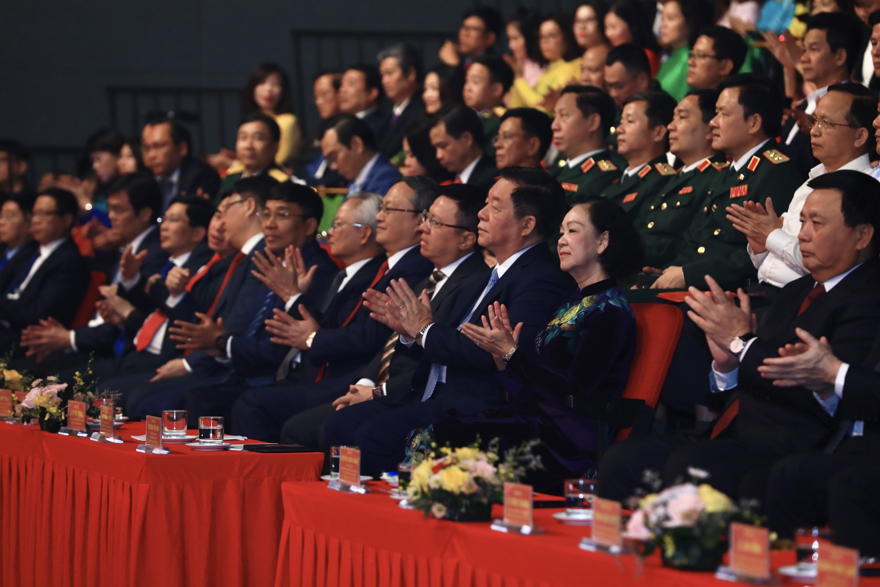 | Thường trực Ban Bí thư Trương Thị Mai và Giám đốc Học viện chính trị quốc gia Hồ Chí Minh Nguyễn Xuân Thắng trao giải A Cuộc thi chính luận về bảo vệ nền tảng tư tưởng của Đảng lần thứ 3 năm 2023 cho các tác giả, nhóm tác giả, ngày 22/10 |
