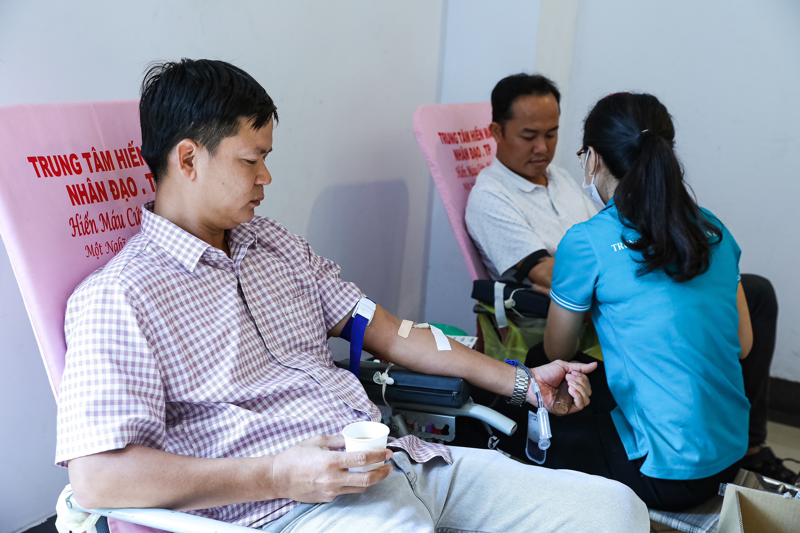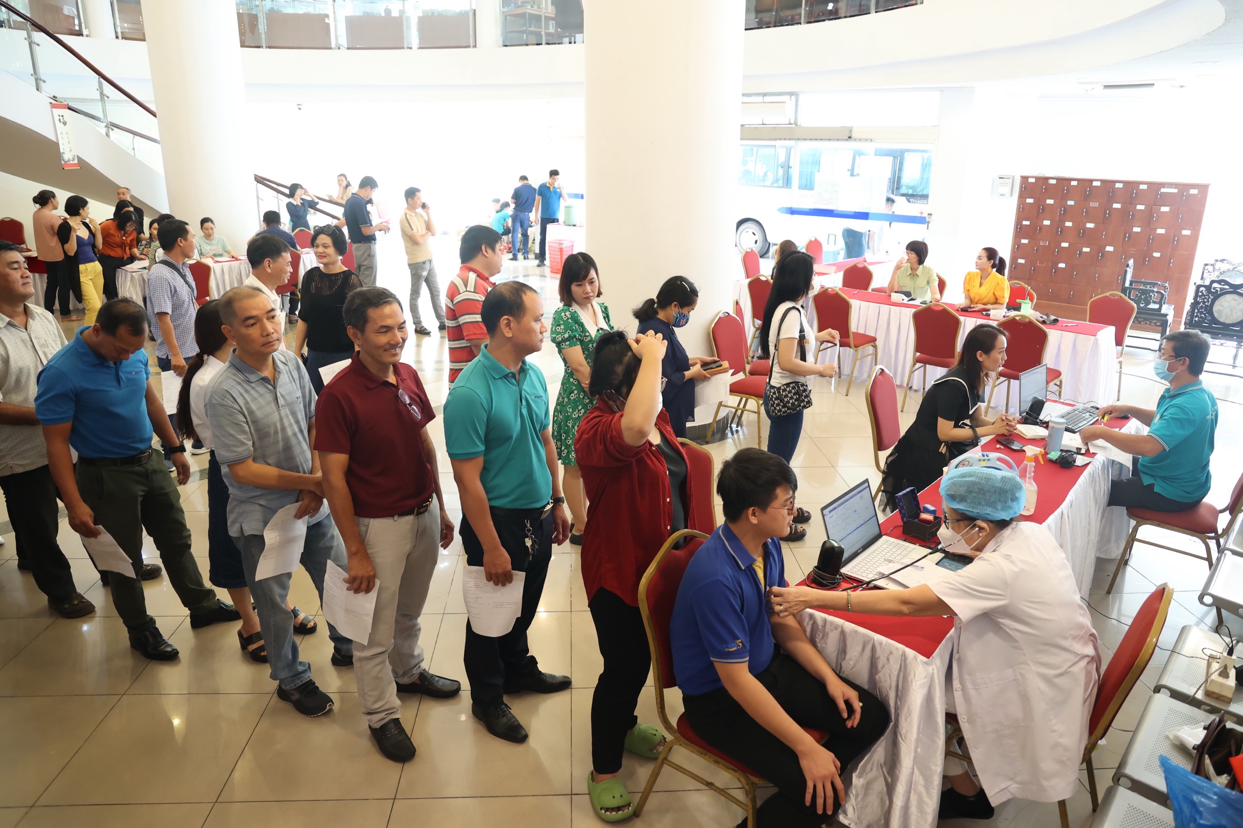 Sự kiện và kỷ niệmTin trong ngành Ngày hội hiến máu tại Cơ quan TTXVN khu vực phía Nam Thứ hai, 30/10/2023 11:37 Ngày 27/10, Công đoàn Cơ quan Thông tấn xã Việt Nam (TTXVN) khu vực phía Nam phối hợp với Công đoàn Công ty TNHH MTV ITAXA tổ chức chương trình hiến máu nhân đạo với sự tham gia của 120 đoàn viên công đoàn. Đoàn viên công đoàn Cơ quan TTXVN khu vực phía Nam và Công đoàn Công ty TNHH MTV ITAXA tích cực tham gia hiến máu, ngày 27/10 Tại chương trình, Ban tổ chức đã tiếp nhận 120 đơn vị máu, góp phần bổ sung nguồn máu dự trữ phục vụ công tác điều trị và phẫu thuật tại TP. Hồ Chí Minh. Đây là hoạt động thường niên của Cơ quan khu vực phía Nam và Công ty ITAXA nhằm thể hiện trách nhiệm, nghĩa cử cao đẹp với cộng đồng, thiết thực giúp đỡ, kịp thời đáp ứng lượng máu cần thiết cho bệnh nhân./. Đoàn viên công đoàn Cơ quan TTXVN khu vực phía Nam và Công đoàn Công ty TNHH MTV ITAXA kiểm tra sức khỏe trước khi hiến máu, ngày 27/10 Nội san Thông tấn