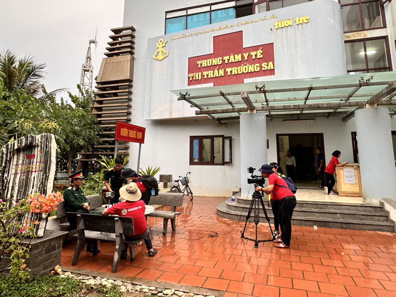 | Nhóm phóng viên Trung tâm Truyền hình Thông tấn phỏng vấn các chiến sĩ, y bác sĩ Trung tâm Y tế thị trấn Trường Sa, tháng 5/2023 |